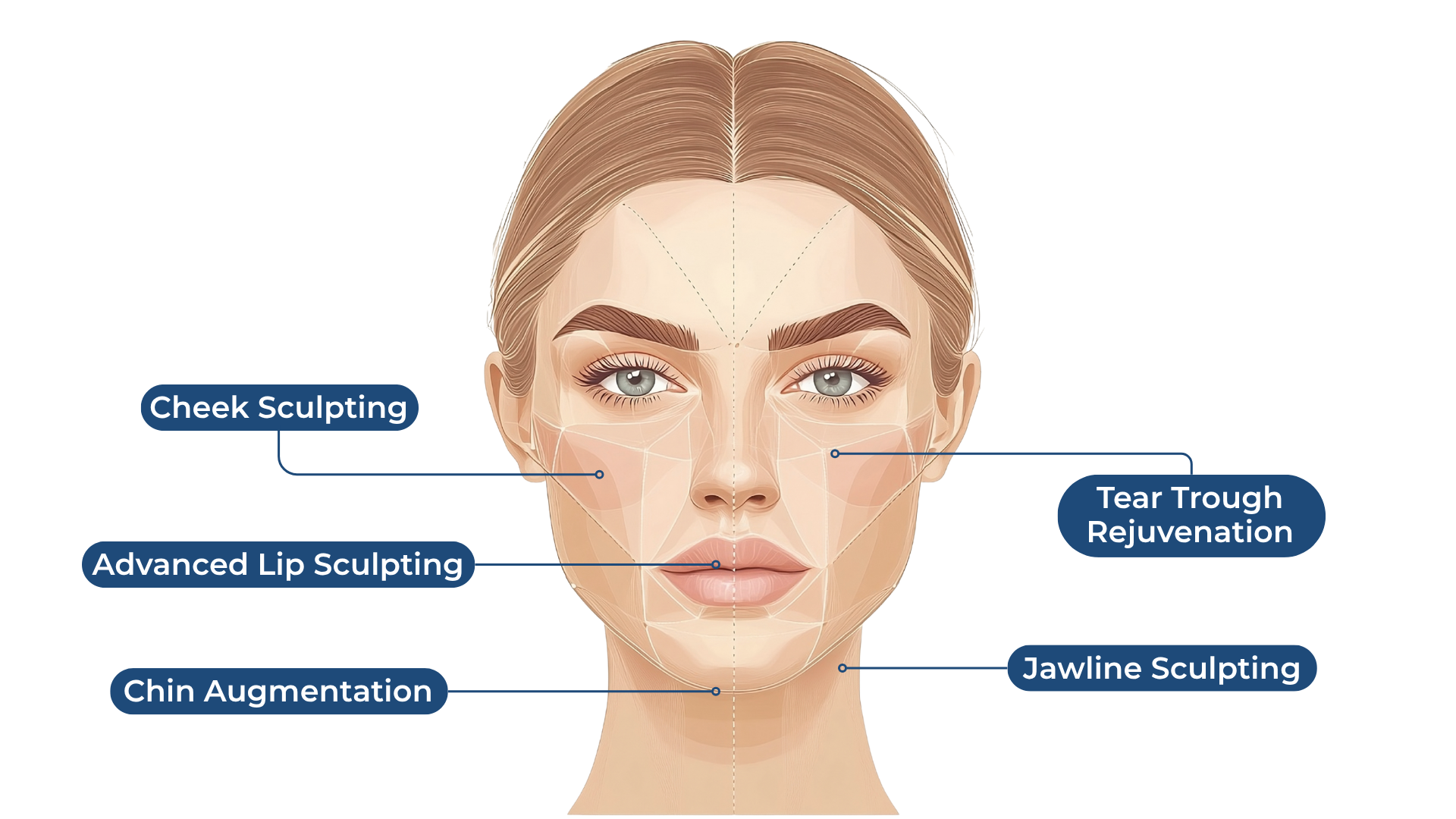 Advanced dermal filler techniques for holistic full-face sculpting, including lips, tear troughs, cheeks, chin, and jawline