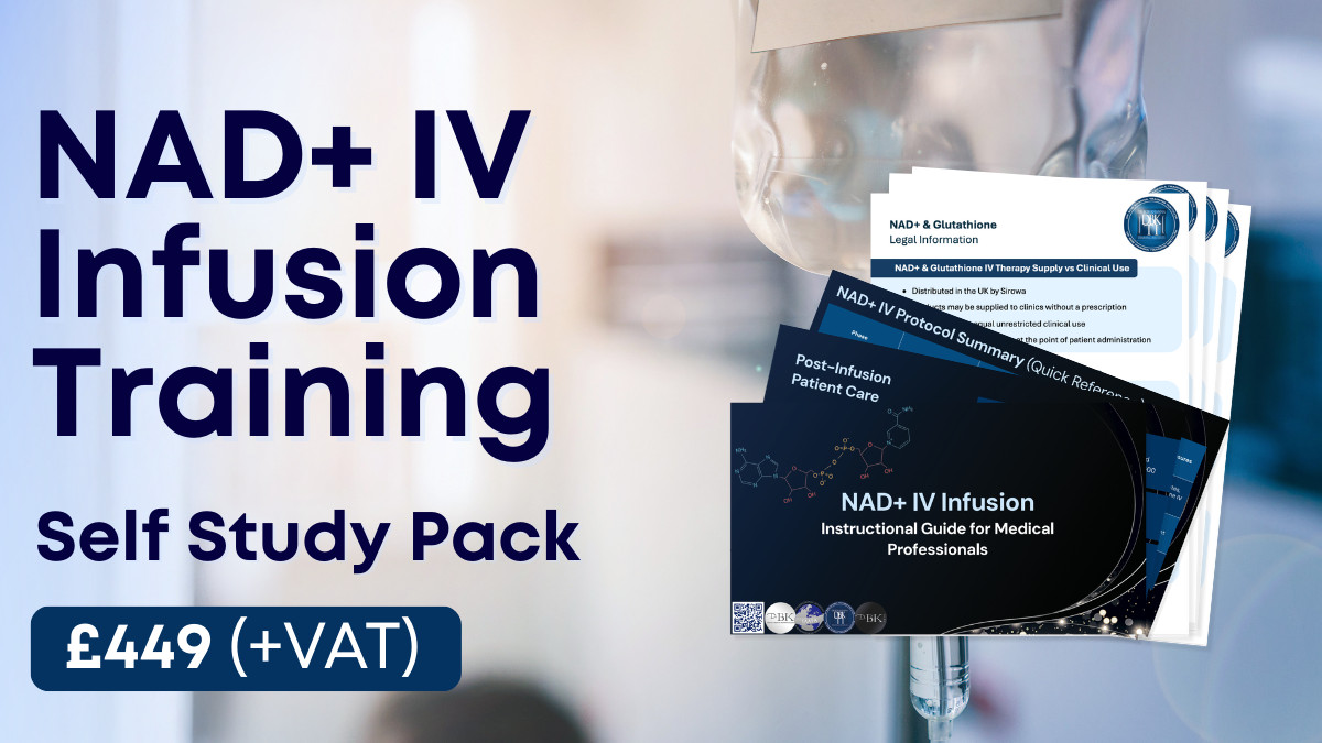 This programme provides the theoretical foundation for NAD+ IV therapy. Clinicians wishing to gain supervised hands-on infusion training can book our Practical NAD+ IV Infusion Course.